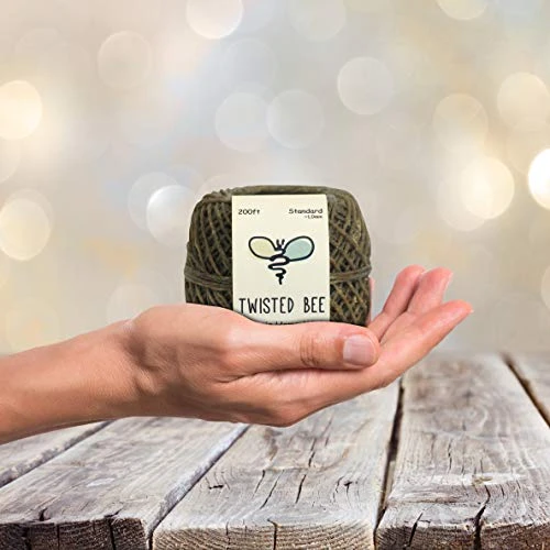 - 200ft of Standard (~1.0mm), Premium Organic Beeswax Coated Rolled Hemp Twine. Ideal for making tea lights, votives, tapers and other similar candles