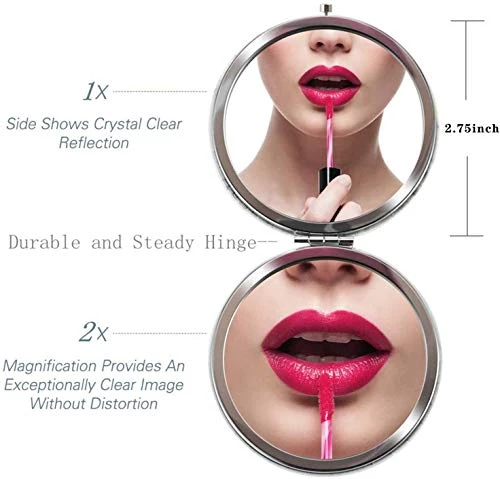 - 【DURABLE MATERIAL】: Environmental protection metal materials,can use long time with great touch.Crystal style,pocket mirror made of polished metal material, durable and steady hinge.Double mirror clamshell compact design is easy to carry in a purse or bag.
