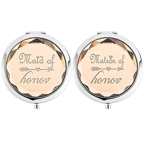 - 【PACKAGE INCLUDE】: 1 champagne maid of honor makeup mirror and 1 champagne matron of honor makeup mirror