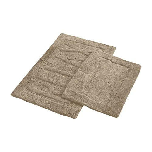 - Set consists of 2 Bath Mats only. Generously made with micro polyester. Plush tufts and RELAX sculpted details. Super absorbent and it keeps your feet warm. Machine washable facilitates easy cleaning. Adds an elegant touch to your door. Material : Microfiber. Care instruction : Machine Wash. Season or holiday : All Season. Color : Brown. Lifestage : Adult. Set includes : Multi-Size Set. Product Size: 17.0 In. L X 24.0 In. W X 1.0 In