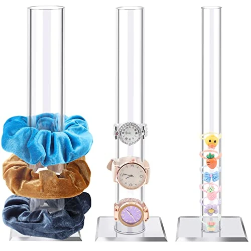 - ❥【Stack ’em Fast】These scrunchies display are available in three sizes, large, medium and small, with diameters of 1.8 inch, 1.4 inch and 1 inch respectively. The 11inch long barrel design can store the hair band with large capacity. The hair scrunchie holder’s top is open, and small things can be placed in the cylinder. You can slide and find things fast, shorten the preparation time for going out.