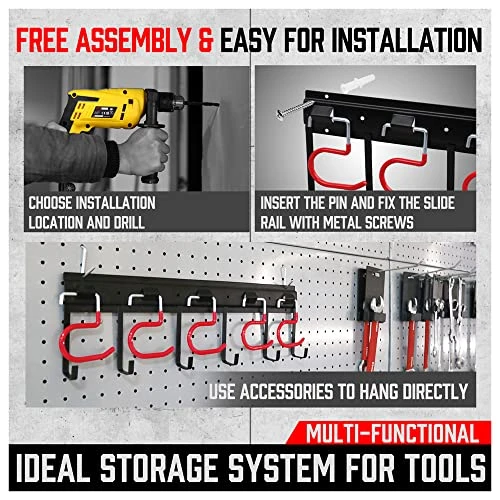 - 𝗔𝗡𝗧𝗜-𝗦𝗟𝗜𝗣 𝗗𝗘𝗦𝗜𝗚𝗡 – Hooks boast a strong PVC anti-slip layer for easy gripping and scratch protection, ensuring tools remain securely in place.