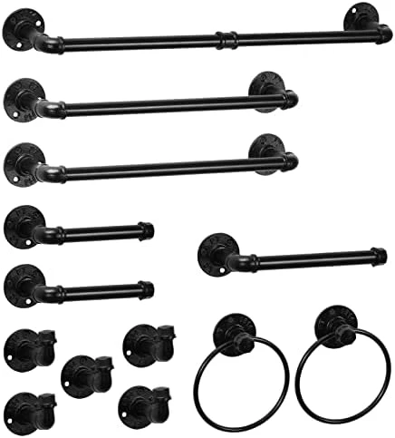 - 【Premium Material】The bathroom accessories set is constructed from premium quality iron with black coated finish, which Protects towel racks and towel rings from rust and corrosion, durable for long term use.