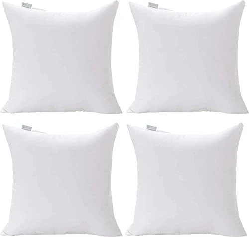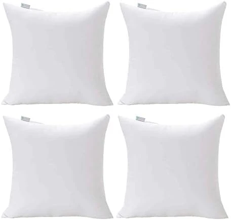 - 4-pack decorative throw pillow inserts in 20×20 inches. For better results, we recommend placing our inserts in shams that are 1″ or 2″ smaller than the pillows to keep it looks more fluffed.
