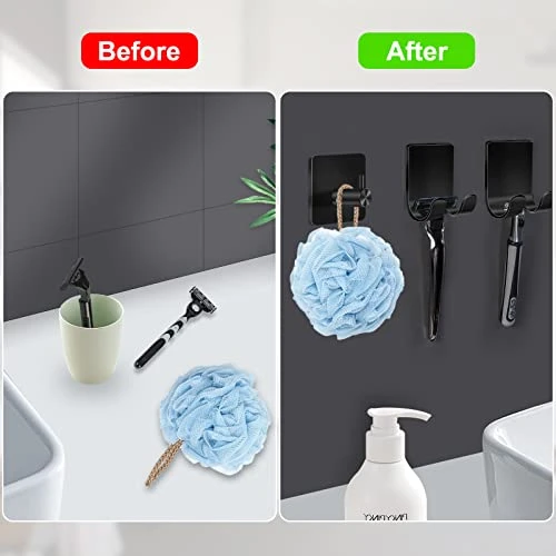 - 【Black Self Adhesive Razor Holder Stick Hook】No Tools, No Screws, No more ugly holes in your wall. Just need to peel off the protective layer and stick it on the desired position. Please follow the instruction to install and leave for 24 hours before use