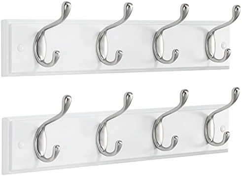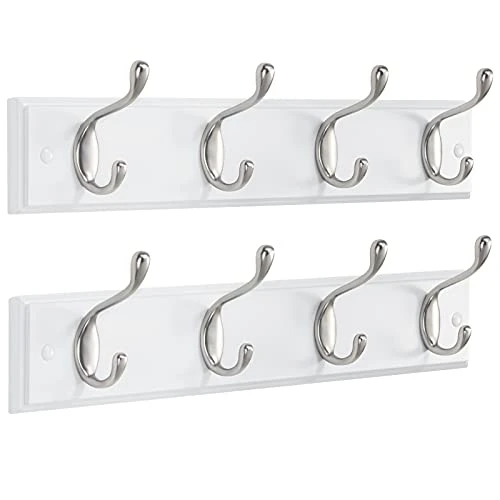 - Modern Coat Hooks for Wall: White smooth MDF board and 4 sturdy zinc hooks match all kinds of home décor. Comes with 2 screw caps, which cover the holes for a flawless look. Veneer type finish, so it’s easy to keep clean and no need to worry about mildew.