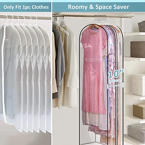 - 【Identify at A Glance】Dress bags for gowns long made of Clear&Water-proof PEVA, help to know what is inside instantly, you can find the clothes conveniently and quickly without opening hanging storage bags, and benefit from waterproof design, if it gets dirty, just gently wipe it with a wet towel;
