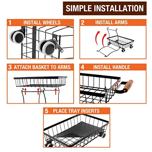 - SLIM AND PORTABLE: We’ve designed our stackable shelves to organize a lot while taking up a little. Each basket measures just 9.4” (W) x 14.5” (L) to fit into tight spaces. You’ll love the wooden handle at the top and wheels at the bottom that allow you to move the shelf organizer easily.