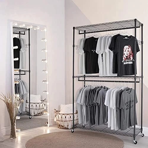 - ★ MAXIMUM LOAD UP TO: Almost 400lbs, 133lbs per shelf. Designed with high quality material, the heavy-duty construction makes it organize more clothing and objects. Ideal using in bedroom, attics, basements & garages.