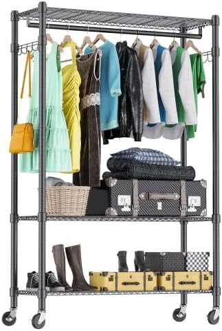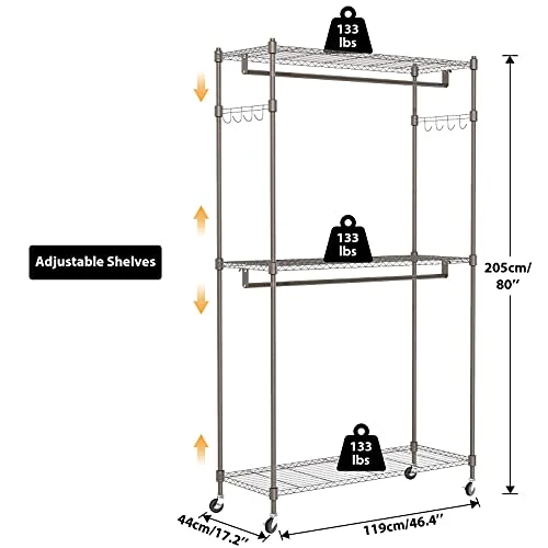 - 👗80” Height Rack to Store 100+ Clothes👗: Size: 80×46.4×17.2 inch. Weight capacity: 400 pounds. Heavy duty 3 tier design & 2 side hooks make sure it can hold 100+ clothes, hat, bag, box, shoes etc. Keeping your room organized, neat and clean.