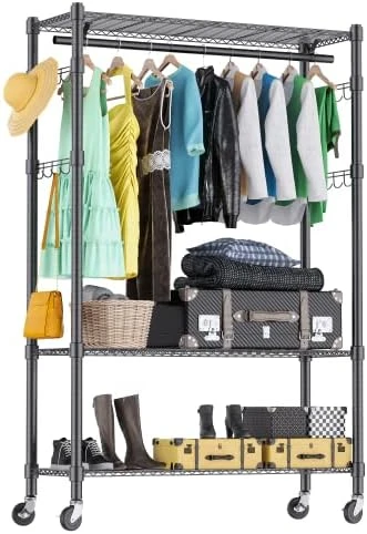 - 👕Lockable 360° Casters👕 : The four 360° swivel wheels at the base of the rack make it easy to move around even when hanging heavy clothes. You can easily transport your clothing items from one location to another. 2 of the wheels have locking mechanisms to keep the rack in place when needed.