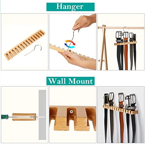 - 【2 in 1 Design】 You can choose the way you like to install your belt hanger–can be fixed to the wall or hung in the closet. Wall-mounted contrast hangers are more stable and less prone to tilt and swing.