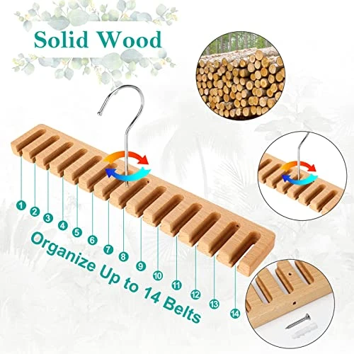 - 【14 Slots Large Capacity】 Compact size design can hold up to 14 Belts, centralized storage to avoid mess, loss and vertical hanging to avoid damage to belt shape, space saving belt holder for Closet, Wall, Door.