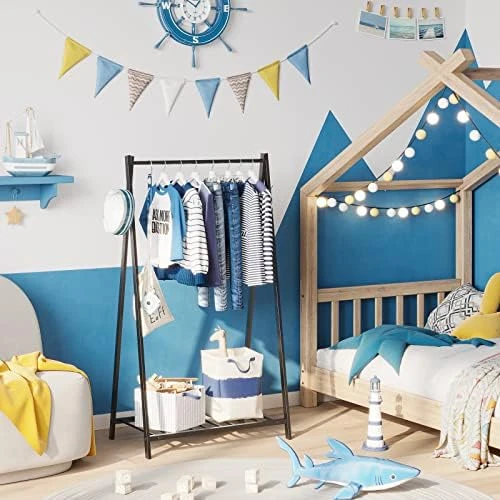 - 🎀【Sturdy Steel Structure for Durability】Elaborately made of high-quality steel for strength and durability, this freestanding kids garment rack is very sturdy with large load-bearing capacity. It will not deform or break under normal usage