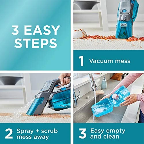- 3-STEP CLEANING – Simple-to-follow instructions ensure effective cleaning every time: vacuum, spray/scrub, empty and clean collection bowl.