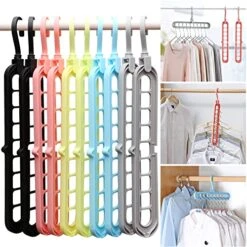- 👖★Multifunctional Closet Organizer★ The hook of the cloth hanger can be rotated 360° freely, which can be applied to various closet rods. Hanger organizer stacker can be rotated 360 degrees and evenly dried to make clothes dry quickly. 360-degree rail slide, built-in slide rail buckle can fix the movable hook, link movement makes the hanger vertical and save space. A magic space saving hanger that can be hung horizontally and vertically