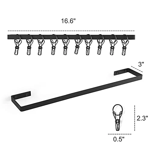 - Package: Comes with 2 black round tube hanging rod (42*7.4*1.5cm), 20 clips . Easy install on the wall, sturdy and durable, strong bearing capacity.