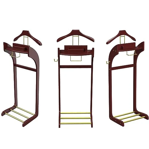 - â–¶ PERFECTLY COORDINATED: An all-in-one essential for walk-in closets or bedrooms. The free standing rack features a contoured jacket, shirt and coat hanger with a front slacks / trouser hanger bar. Plenty of space at the bottom to pair your outfit with dress shoes or sneakers.