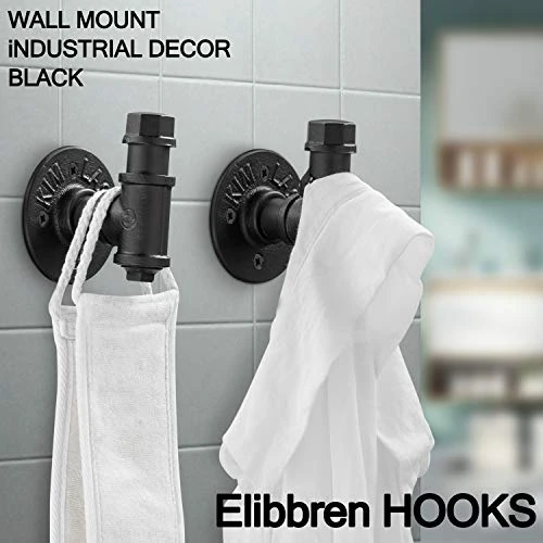 - Industrial pipe iron hooks is electroplated black finish, made of quality iron to protect against rust. Package contains: 3x pipe hooks, 3x mounting hardware included. This hook is without any annoying stickers or glue!