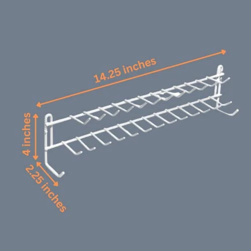- SPACE SAVING: Set of 2 racks each have 27 hooks placed in two rows, allowing for a narrower 14.25 inch wide rack. This allows you to fit the rack into tighter places, yet still hold up to 100 items up to 20 lbs per rack.