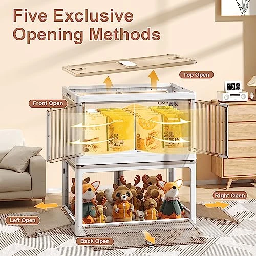 - 【FOUR EXCLUSIVE OPENING METHODS】With our patented five-door opening design, the storage cabinet offers 4 exclusive ways to access: a top lid, double doors on the front, side doors on the left/right, and a rear door. This means you can easily take out items from hidden corners! The semi-transparent design helps you quickly identify what’s inside. All doors are designed with security locks!