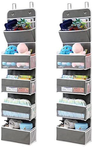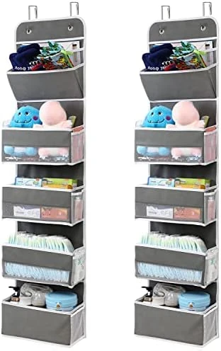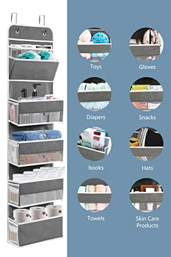- Large Storage Capacity: over door organizer has 4 wide and deep large pockets + 1 file organizer, behind door organizer total size is 13.78 (L) x 5.12 (W) x 55.12 (H) inch, add a lot of extra storage space to your limited living space, such as diapers and wipes, clothes, hats, toys, picture books, comic books, toiletries and cosmetics