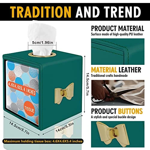 - [ APPLICABLE PLACE ] – This tissue box cover square combines traditional handmade leather technology with the trendy style design, its like a decorative box, has a living room decor aesthetic, which is ideal for housewarming gifts new home, home decor, office decor, bedroom dressers decor, bathroom organizer decor, centerpiece table decorations, nightstands, car, automotive use.