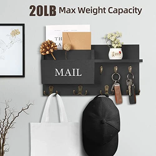 - 【Multifunctional Organizer】- This black hanging mail organizer and key holder come with separate spots for mail, and keys, and helps your family get out the door to work and school quickly. It is carefully designed to hold letters, bills, house keys, car keys, leashes, dog leashes, backpacks, and more.