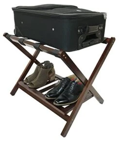 Deluxe Folding Wooden Luggage Rack With Shoe Shelf, Walnut Finish, Hotel Style