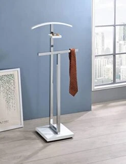 Kings Brand Furniture – Vaccaro Metal & Wood Suit Valet Stand, Clothes Rack, White/Chrome