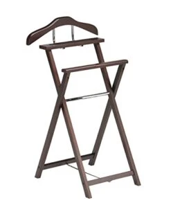 KB Designs – Suit & Tie Freestanding Folding Valet Stand Clothing Organizer Rack, Walnut/Chrome