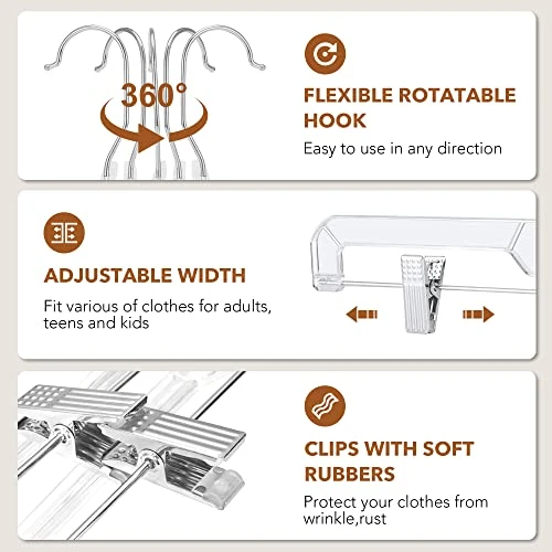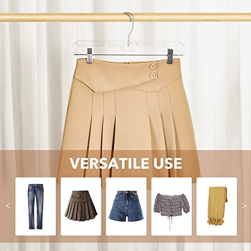 - 【Super Slim Skirt Hangers Space Saving】:Our jean hangers are only 0.25 inches thick,and you can stack the uniform dress on the hangers and clip a short or pant on each a clip. This has been a huge space saver in your closet