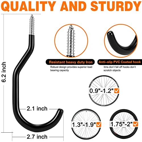 - WIDELY APPLICABLE: These hooks save space and maximize your space in home and apartment, garage, basement, tool shop. Versatile and Reusable, Ideal for ceiling or wall hanging of bicycles, power recreational equipment, Pendant Lights, Hanging Baskets , lawn garden tools hoses.