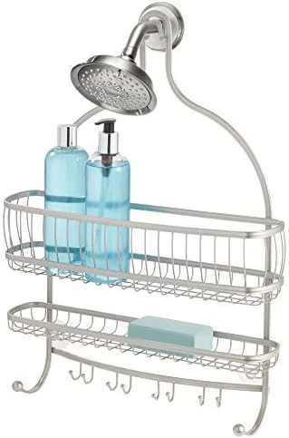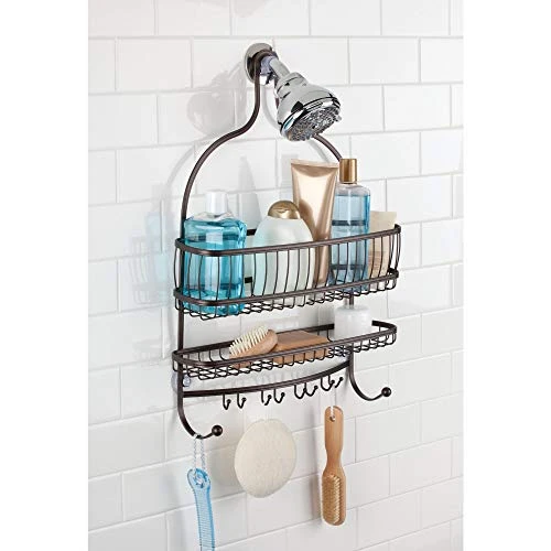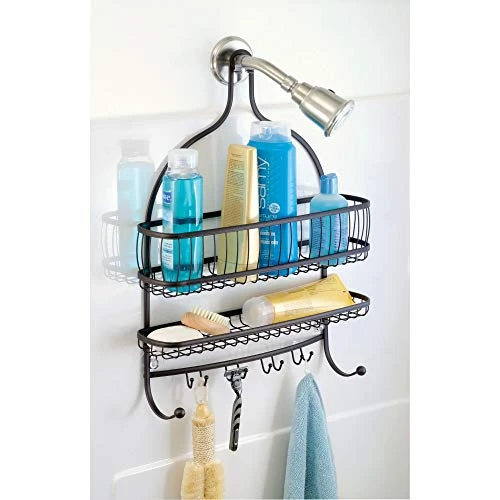 - MULTI-PURPOSE STORAGE HOOKS: Innovative storage hook design accommodates standard-sized razors in addition to washcloths, loofahs, sponges, and brushes