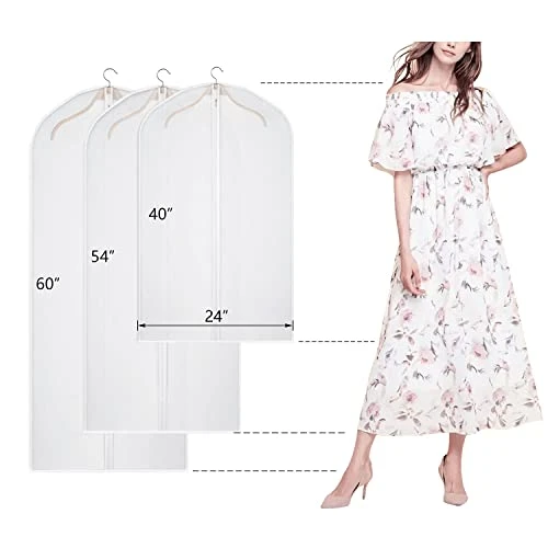 - 【Durable and Smooth Zipper】With zipper clip of clear dress garment bag to avoid zipper slip off, completely solve the problem of zipper breaking or falling off. Easy to use, smooth sliding up and down. The upgraded zipper ensures that you can use the clear dress bags for closet storage for a long time