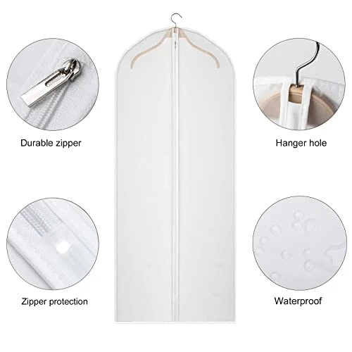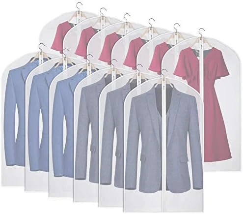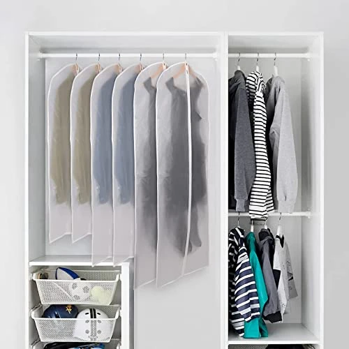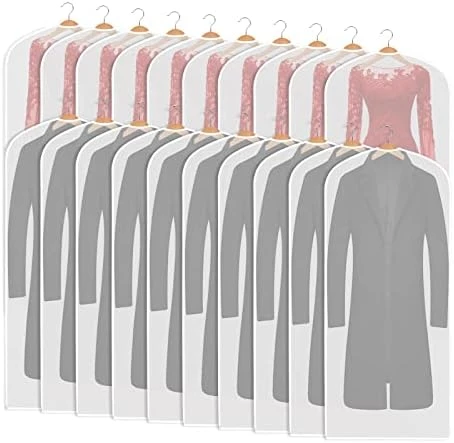 - 【High Quality Fabric Garment Bag 】The Clear garment bags are Made of soft PEVA material, Dust and water resistant, every suit and dress has a garment protective cover and breathing space, keep your clothes away from dust, wrinkle free and hair. The clear garment bags for storage easily Keeps your favarite or off season clothes cashmere fresh and clean