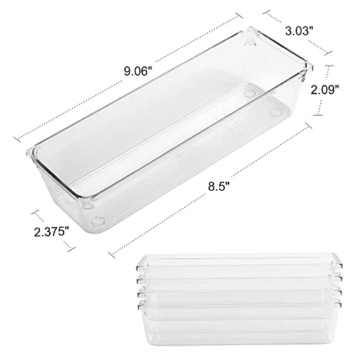 - 【DIMENSIONS】: Our desk drawer organizers measure 9.06”×3.03”×2.09” (outer dimension)– perfect for a variety of standard sized drawers, allow 0-0.2” variation in dimensions