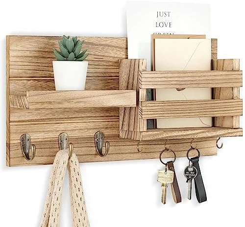 - BEAUTIFULLY STAINED to complement your rustic decor, this mail and key holder for wall features flush-mount hardware. Included wall anchors and step-by-step instructions ensure easy installation of your entryway organizer.