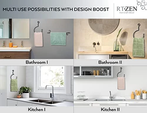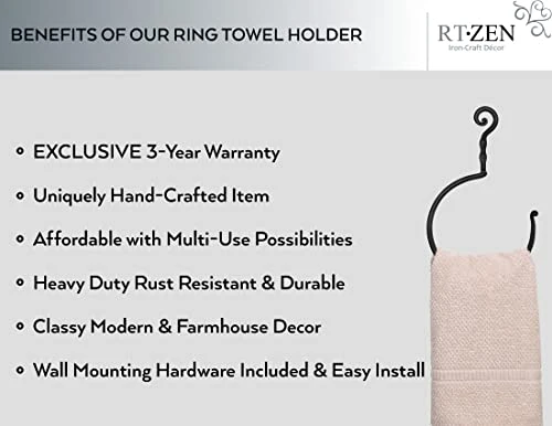 - DECORATIVE BLACK HAND TOWEL HANGER FOR BATHROOM – Unique Hand Forged Accent for Small Towel Hanging in Bathrooms. Classic Style Round Hook Ring Holder for Hand Towels for Bathroom. Use As Towel Bar Rack or Rod