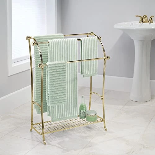 - BUILT-IN SHELF: This towel rack is perfect for holding your washcloths, face towels and full bath sheets stylishly and offers convenient access to you or your guests all while keeping them stored on this modern, stylish free-standing bath furniture piece; Features a bottom shelf that is just the right size for extra face towels, washcloths, bars of soap, hand lotions, essential oils, bath salts, bubble bath, sponges, loofahs, candles and reed diffusers