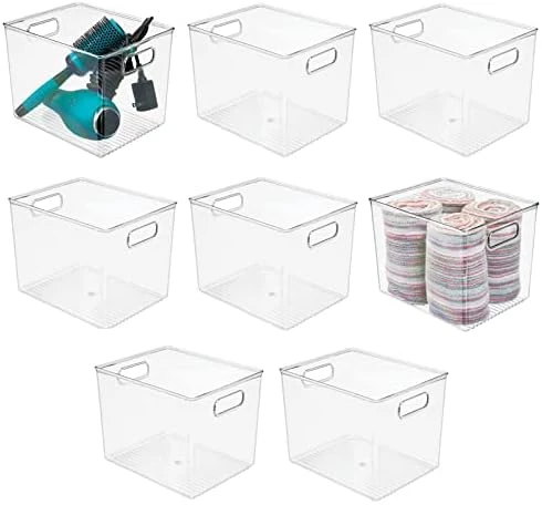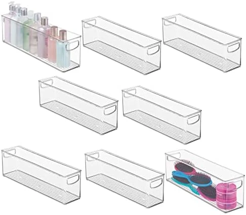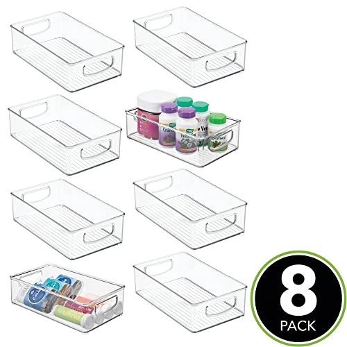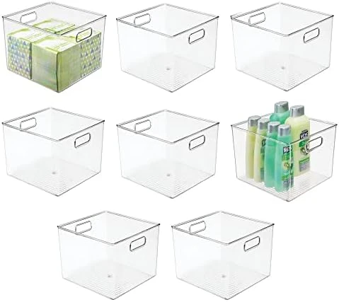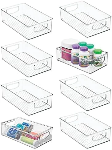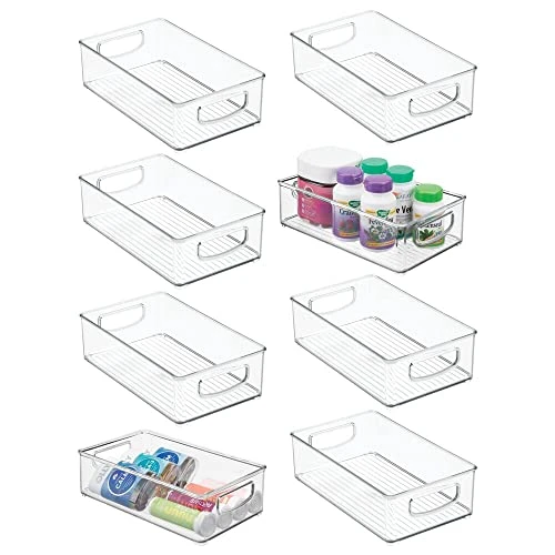 - PORTABLE & STACKABLE: Built-in handles make it easy to move on and off shelves or in and out of drawers; Open tops make it easy to see what is stored inside and quickly grab what you need; Raised feet on the bottom of each bin lets them stack to create space-saving vertical storage; Use multiples to create a custom storage system, stack or use side by side; Just grab and go