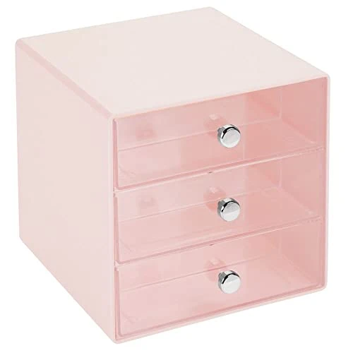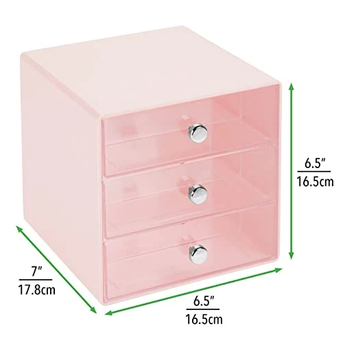 - STACKABLE: Organizers are stackable to create space-saving, vertical storage; The chrome handles are nice accents and make drawers easy to pull open; Stack them, or use side by side to create a customized storage solution that works for you; Perfect for eye wear, but also great for other accessories – store watches, fitness bands, bracelets, necklaces, earrings and other small jewelry items; Use for office supplies, craft supplies, scrapbooking needs and more