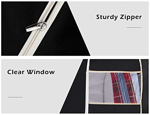 - Large clear window on one side that allows you to see what’s inside without opening the suit bags for closet storage;