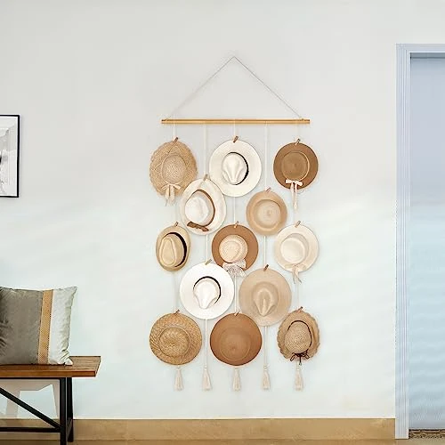 - Made Hat Storage Rack a Beautiful Decor: The wall hat organizer combines a boho and modern style, simple but pactical, multi-functional and decorative. Let your hat become organized, and give your room a fashionable and exquisite touch. Best storage tool for closet bedroom organizer.