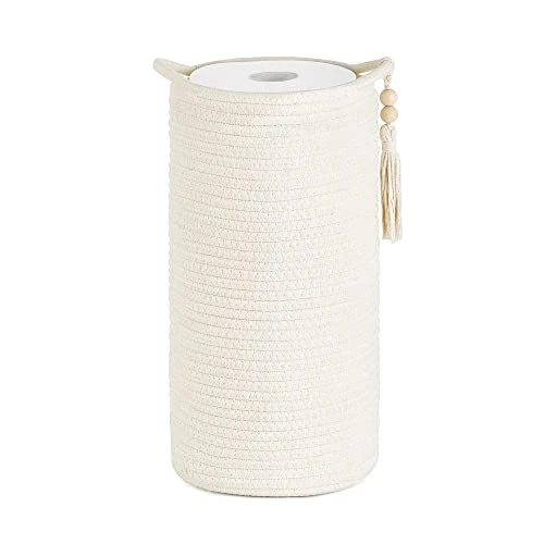 - Premium Workmanship: Tightly woven bathroom deor basket is made of quality cotton rope, foldable and lightweight, soft but sturdy enough that can stand on its own. Exquisite toilet paper tissue organizer is a perfect addiction to use on bathroom.