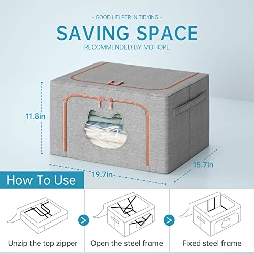 - 【Space Organizer】MOHOPE clothing storage bin measures 19.7×15.7×11.8 inches and has a capacity of 66L, which is suitable for storing out-of-season clothes, quilts, toys, books, etc.