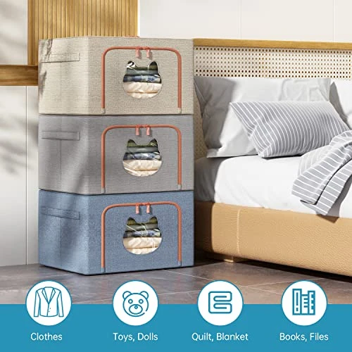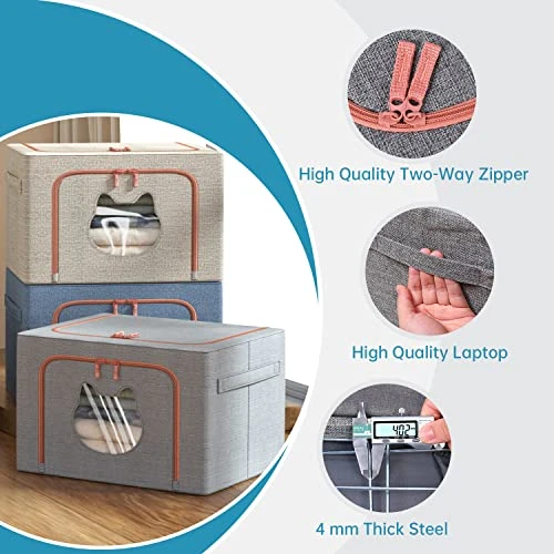 - 【Bidirectional sturdy zipper & Cute Transparent Window】 Compared with one-way zippers on the market, this storage bin zippers are easier to use and help you store better. Through the cute transparent window on the front, you can quickly see what’s stored inside the clothes storage bins.