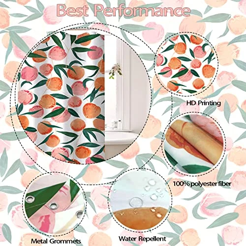 - 【Unique Design】This fruit shower curtain is made up of peachs that are very rich in shape and it look very attractive. It makes your bathroom full of life.