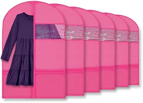- Zippered mesh pockets hold shoes and accessories: Store any shoes or accessories alongside costumes and dresses. Each garment bag includes two zippered mesh pockets on the front, keeping your extra pieces easily accessible and visible.