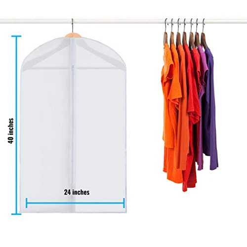 - Hold multiple garments in each 40” x 24” bag: These bags are great for storing suits, tuxedos, winter coats, fur coats, costumes, uniforms, dance recital clothes, blouses, tops, skirts, pants, slacks and dresses up to 36” in length depending on the hanger. Each bag can hold multiple blouses or dress shirts for maximum use.
